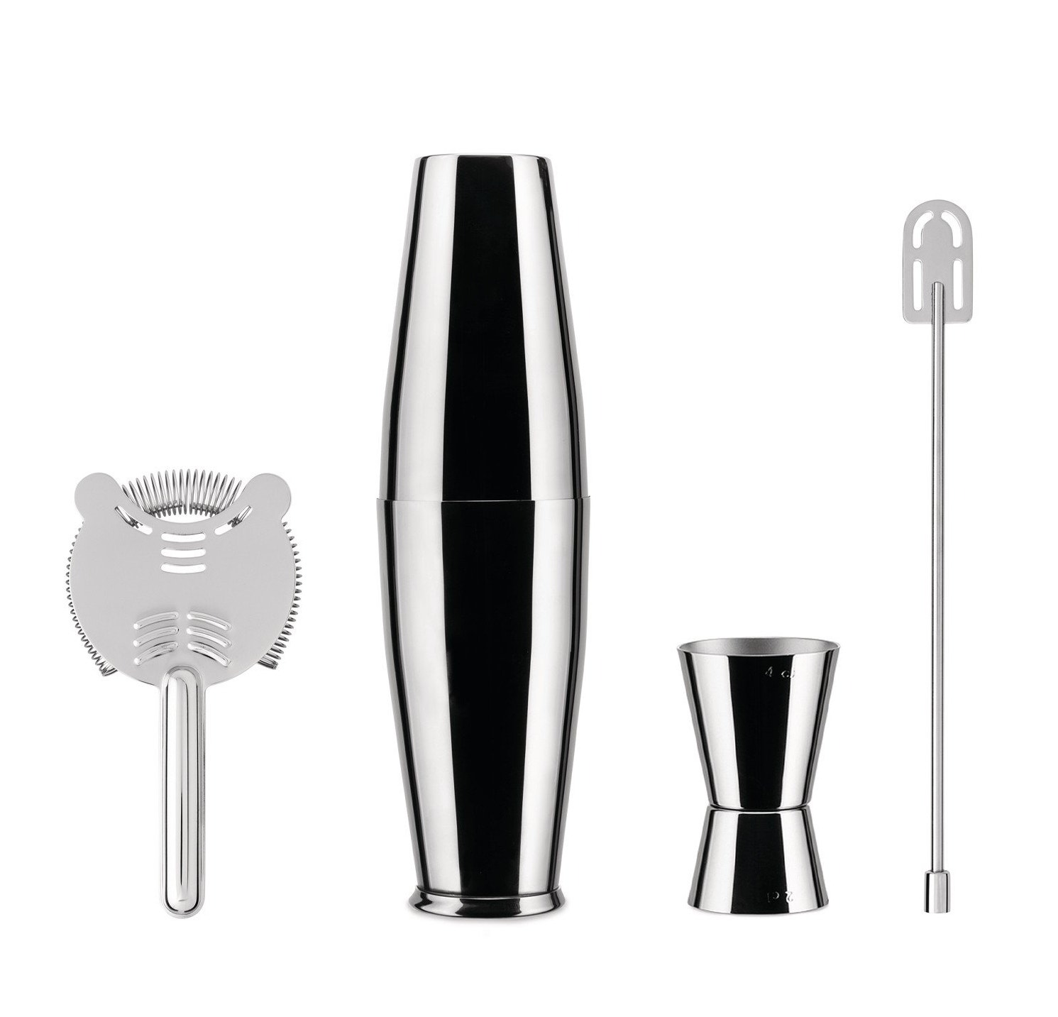 Eclipse is a mixing kit with refined shiny finishes that spread a bright glare. It includes an American shaker, a cocktail measure, bar strainer and stirrer. These are all characterized by a magnetic finish that brings out the refined design. Made in stainless steel, Lunar Eclipse is the mixing kit inspired to the lunar universe.