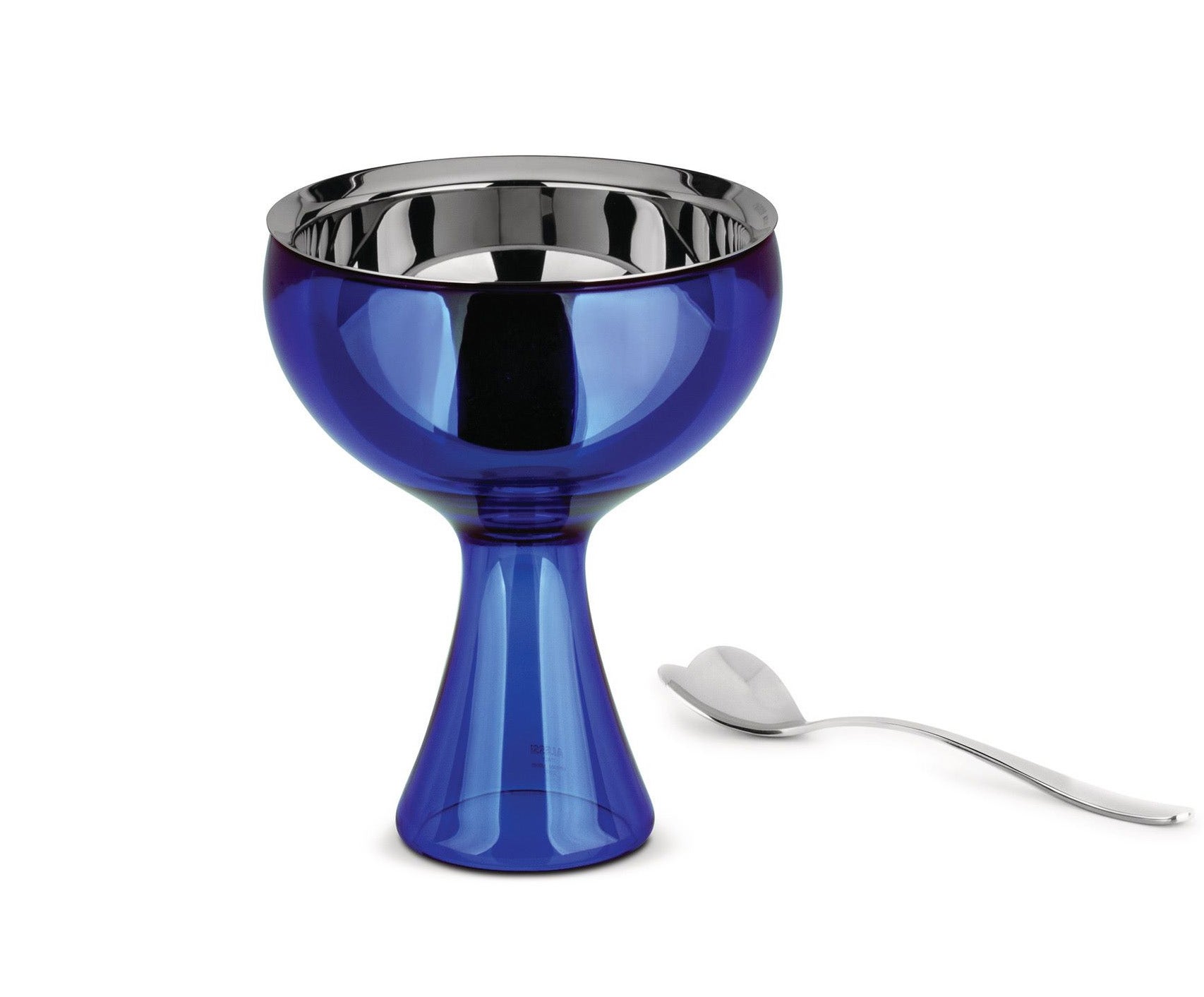 Set composed of one ice cream bowl and one ice cream spoon. It is a big bowl designed for lovers, who can eat ice cream together and therefore provided with a big spoon. See one of the first results of the F.F.F. (Family Follows Fiction) metaproject, an operation in the early 1990s that aimed to explore the affective structure of shapes and objects, starting from the idea of reproducing the object creation process followed by children and primitive cultures. The result is a family of playful objects reminiscent of fairytale characters: they offer attractive answers to everyday uses, they suggest mediation through playing, and they're a bridge to the world of the imagination.