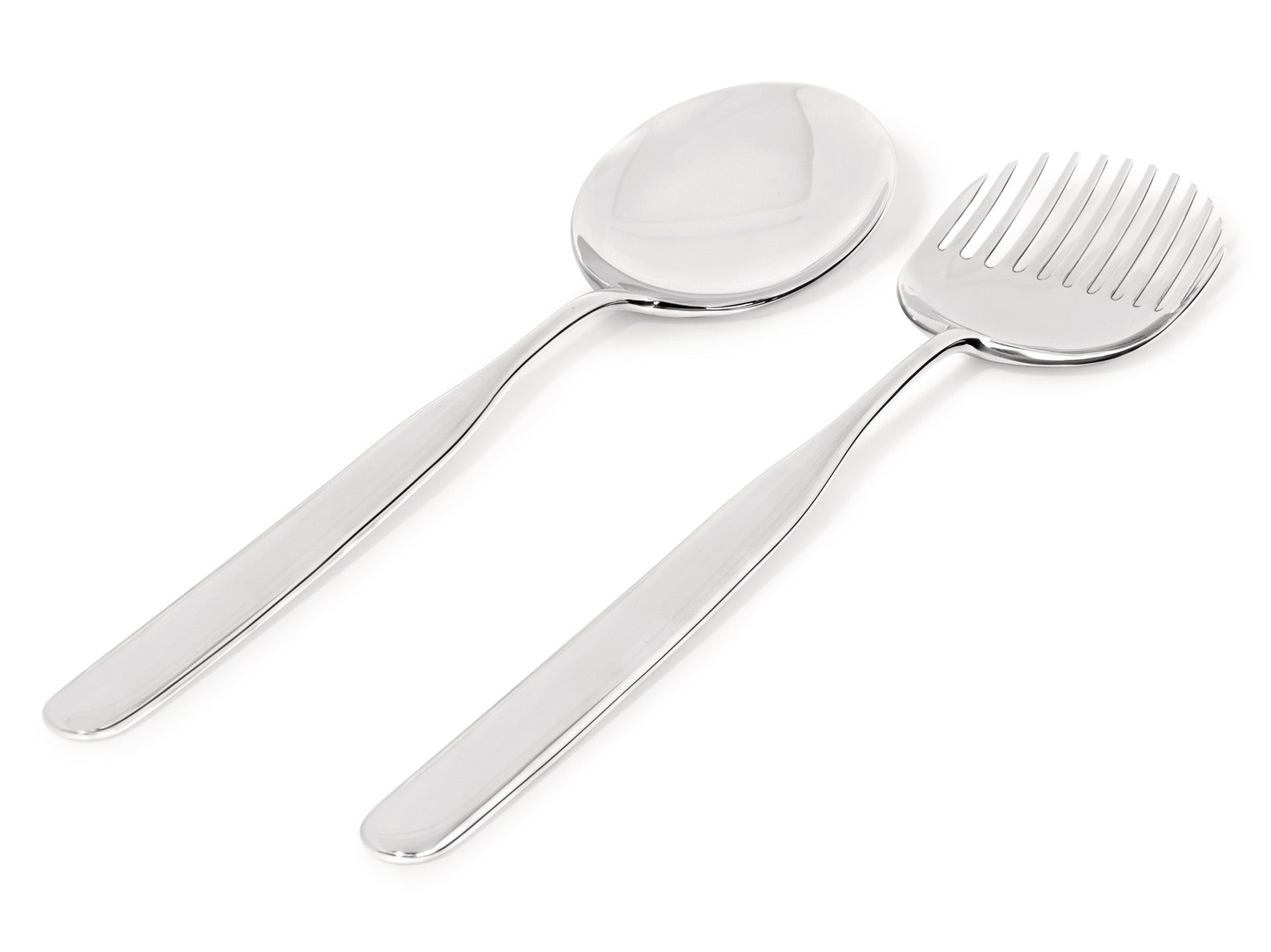 The cutlery set Collo-alto, designed by Inga Sempé, derives from the elegant spoon for serving risotto she designed. The project for the cutlery that makes up the service develops the basic features of that first spoon, distinctive for the contrast between curved and straight lines. The elongated and narrow shape of the segment that connects the handle with the active part of the cutlery gives the name Collo-alto (Italian for ‘long neck’) to this collection.