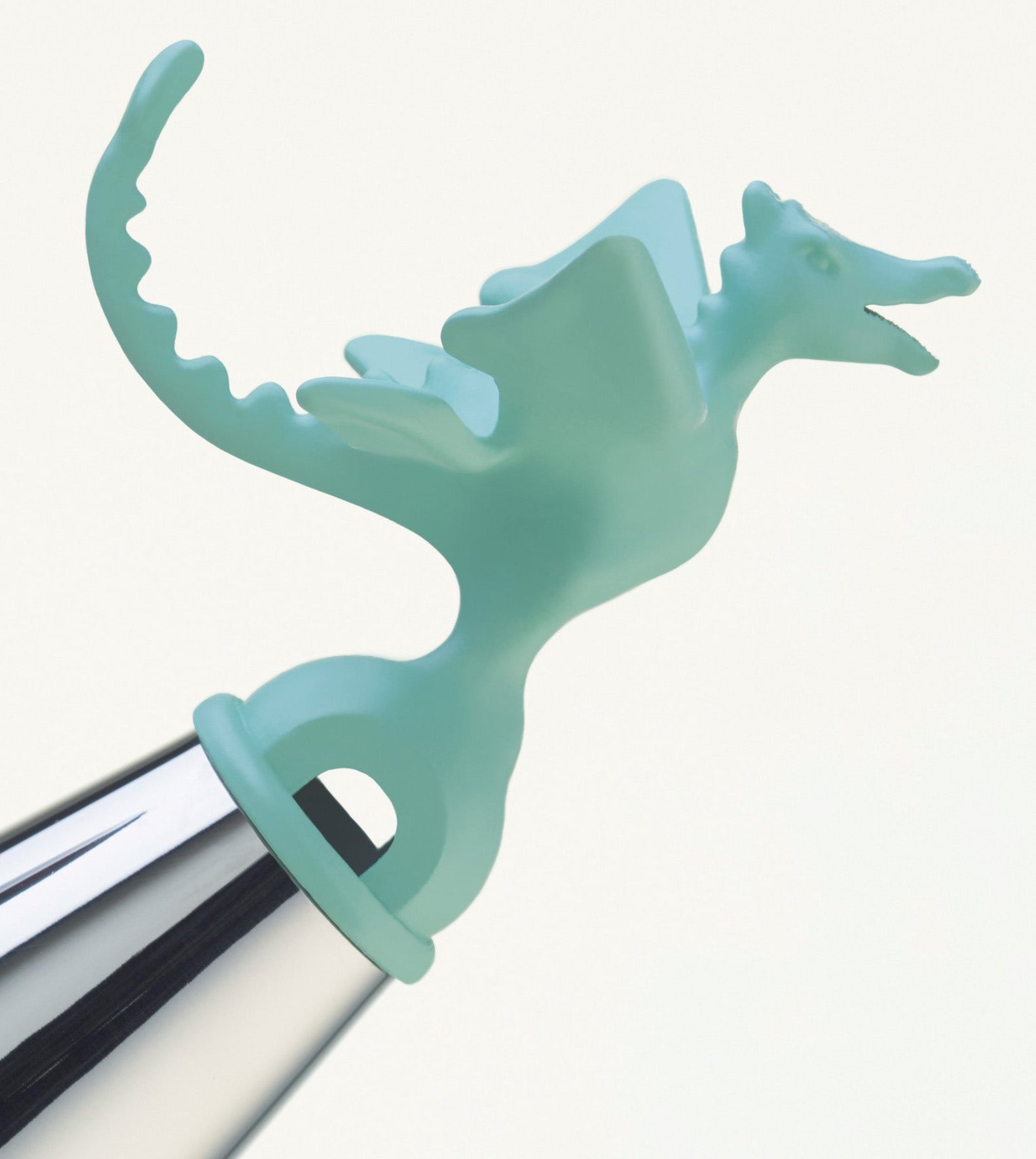 The kettle with the bird-shaped whistle became one of the icons of 20th century design. To mark the 30th anniversary of this famous kettle, Graves redesigns the whistle, turning the little bird into a charming supernatural reptile, a prehistoric, mythological and futuristic creature all at the same time: Tea Rex. The choice of the dragon is a reference on the part of the designer to the Chinese culture for whom these beings symbolize strength and fortune.
