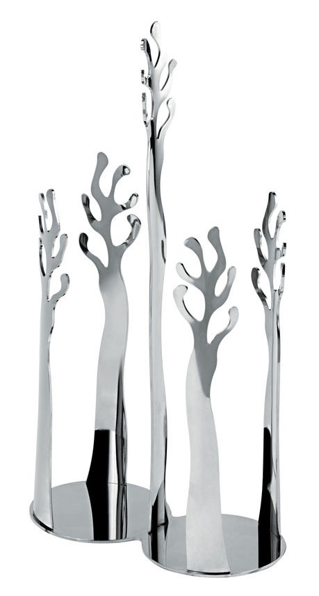 The cup holder designed by Emma Silvestri is part of the "Mediterraneo" family for the table. The project on the formal and functional aspects of an icon like the coral has changed the branches so that they can contain the paper cups.