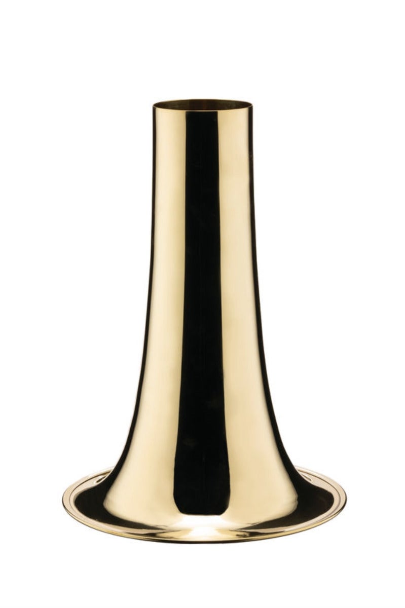 Inspired by the trumpet-blowing White Rabbit that Alice follows down the rabbit hole to Wonderland, Michael Anastassiades's Trumpet vases are produced the same way as the bell of this ancient wind instrument. He chose for one of the most traditional techniques of hand-turned metal, whereby a disk of metal, usually brass, is formed. Its diameter is then progressively narrowed to the size of a finger, which allows the piece to be welded to the rest of the object's body. This process is used to build most wind instruments. In Anastassiades's poetic eye, it gives shape to flower vases whose convex underside curves up into the shaft as an ulterior connection to the shape of the object by which it was inspired.