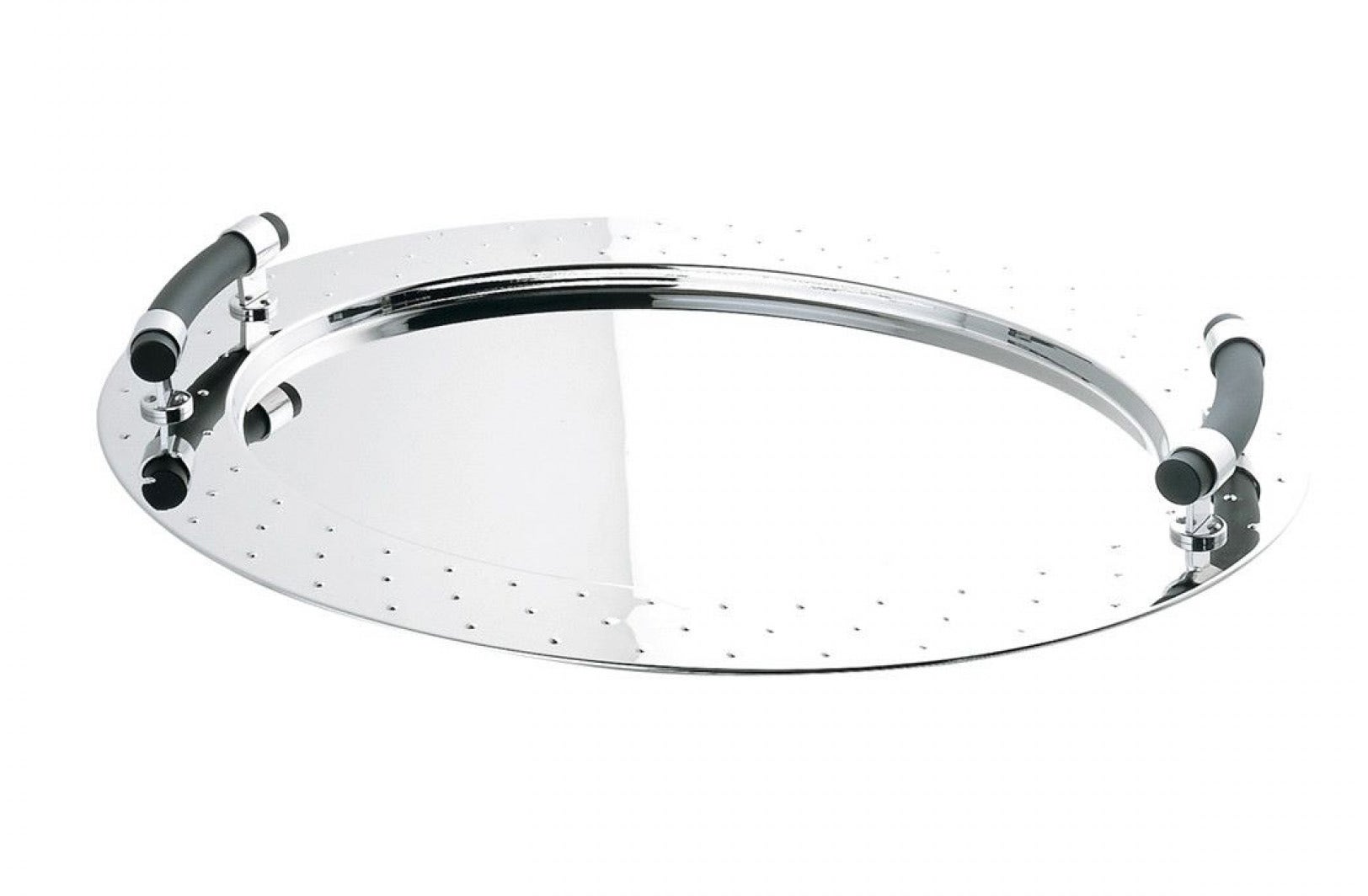 One of the Alessi's greatest trays, it echoes the decorative details of the family of kettles with whistling birds from 1985.
