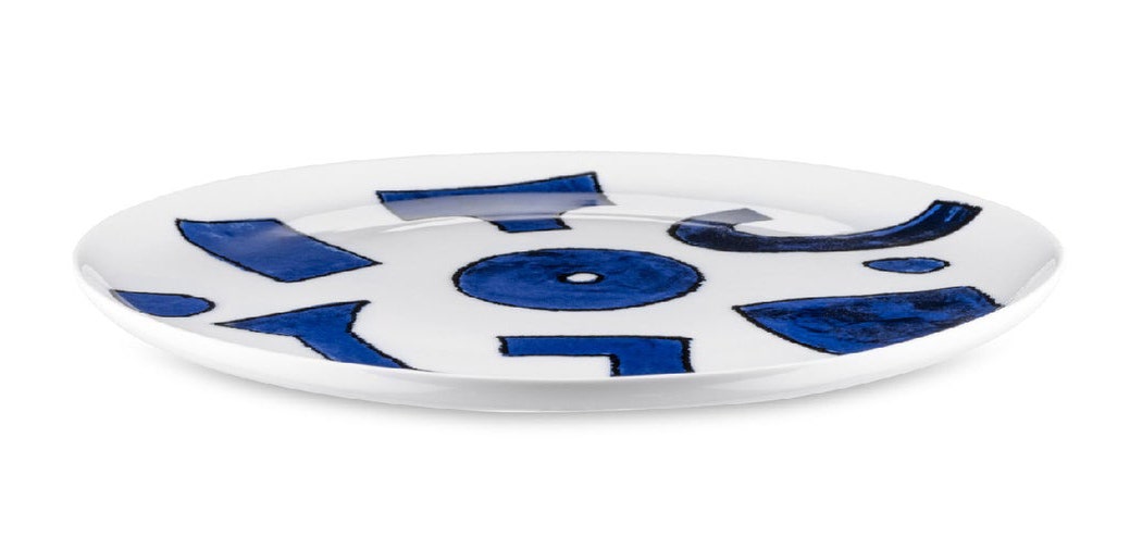 Dinner plate in white porcelain. Pattern design by Samiro Yunoki.