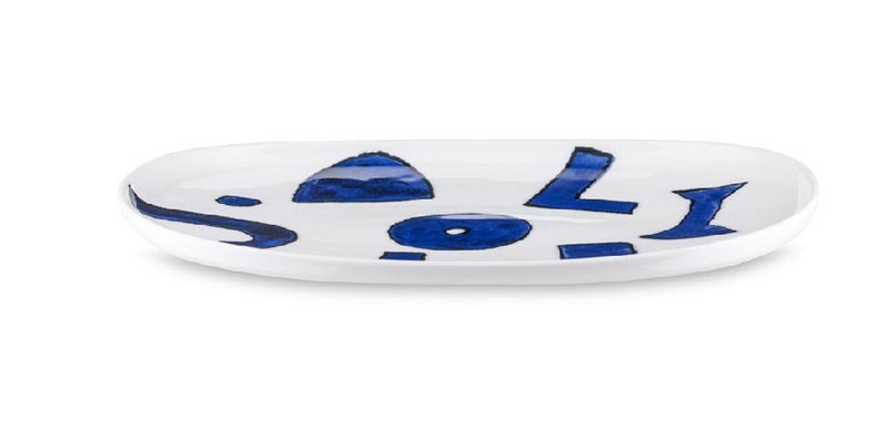 Oval serving plate in white porcelain. Pattern design by Samiro Yunoki.