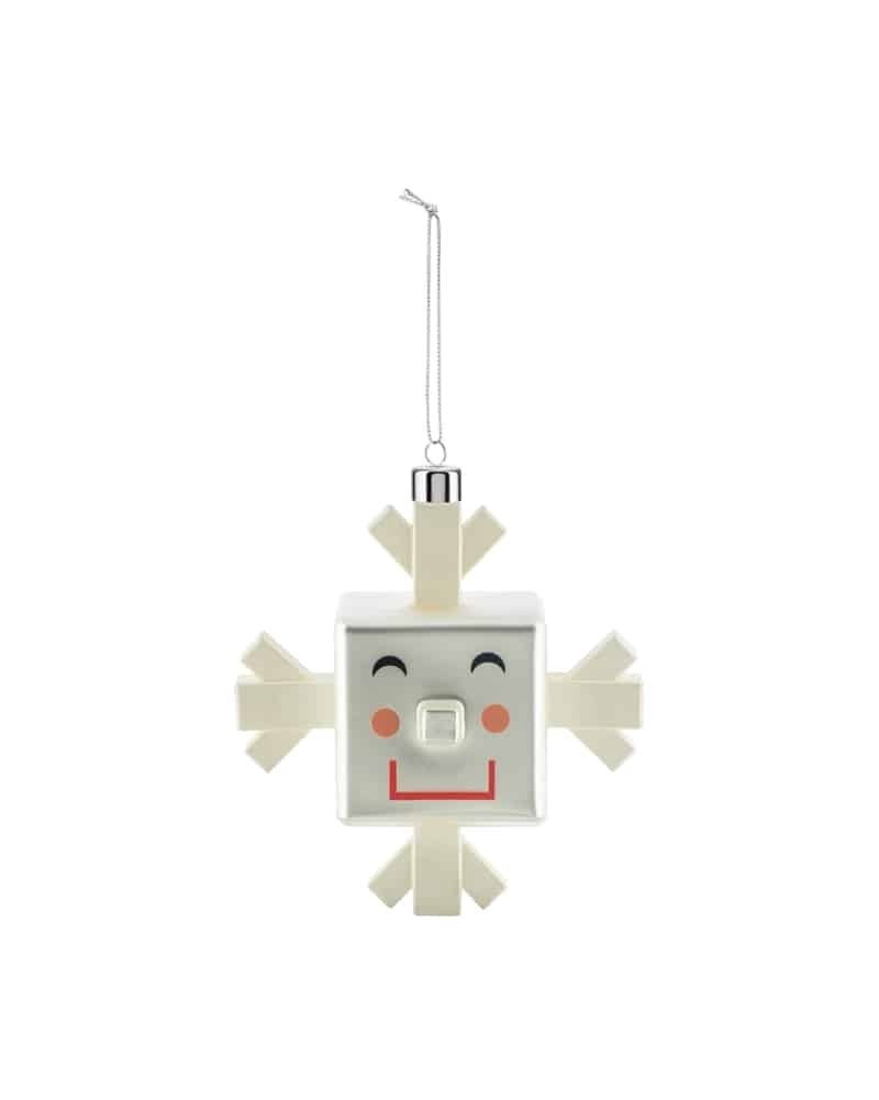 The explosive creativity of Massimo Giacon and Marcello Jori brings us the Palle Quadrate (Cube baubles) collection. Its two creators present a reinterpretation of these classic baubles, drawing on their very personal imaginations. The result is a series of nice characters that brighten up our Christmas: smiling, colourful… square!