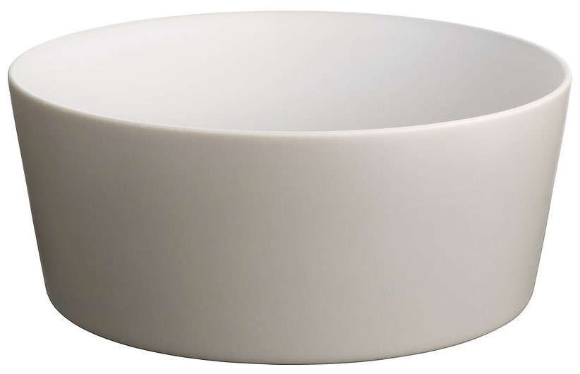 A seemingly random collection of objects, the table service comprises a number of items including a tray, a board, a carafe, plates, bowls, beakers, and cups. The project, designed by david Chipperfield, was inspired by vernacular ceramics from Korea, Japan, and China, and conceived as an exercise in refining functional household objects. The name ""Tonale"" refers to Giorgio Morandi's use of colour tonality imbuing his daily objects with a sense of individuality. The objects are produced in a variety of materials including enamelled steel, glass, earthenware, and wood. While striving for expressive purity, the range honours today's requirements for durability and versatility.