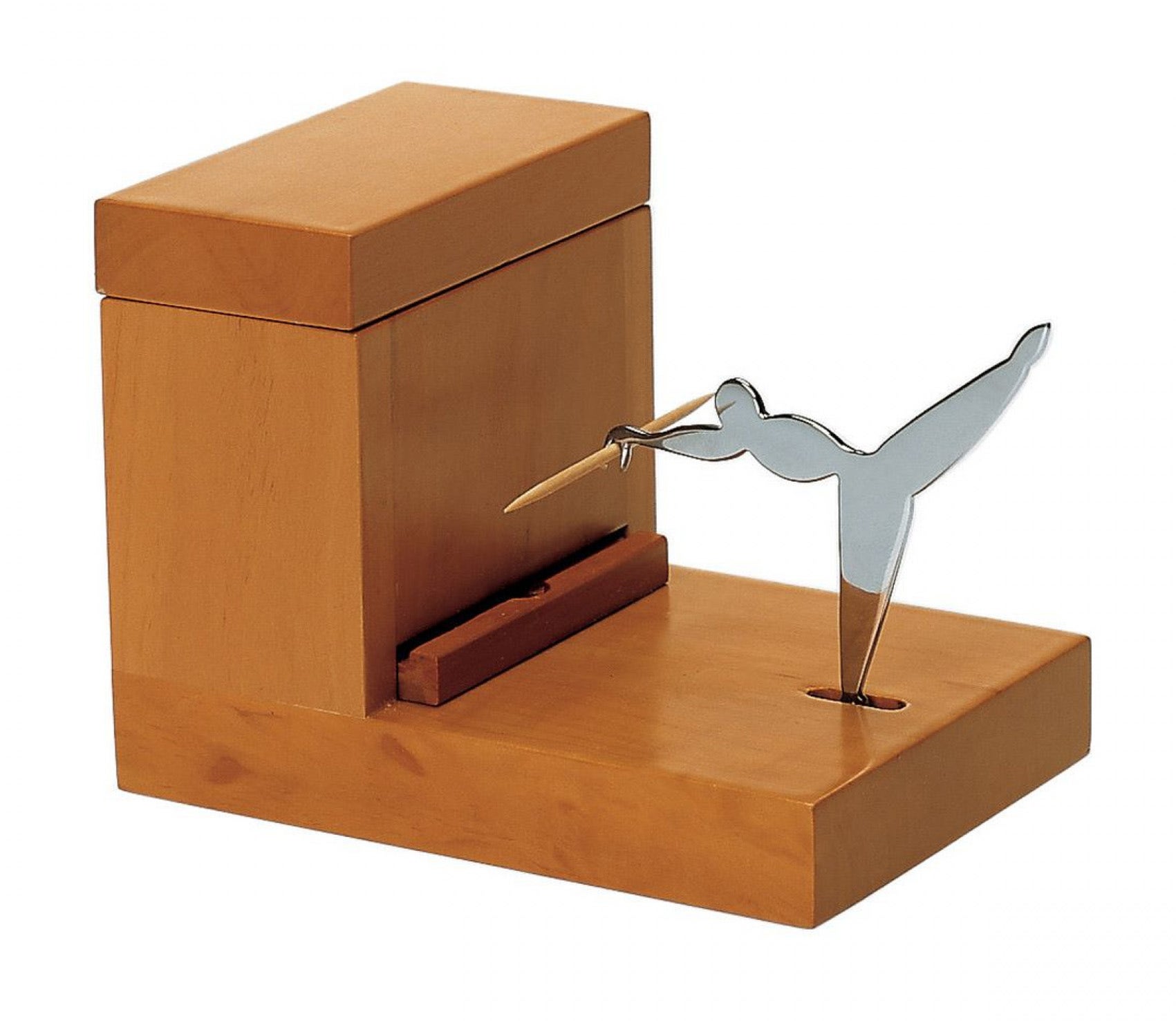 Toothpick holder in steel and pear-wood.