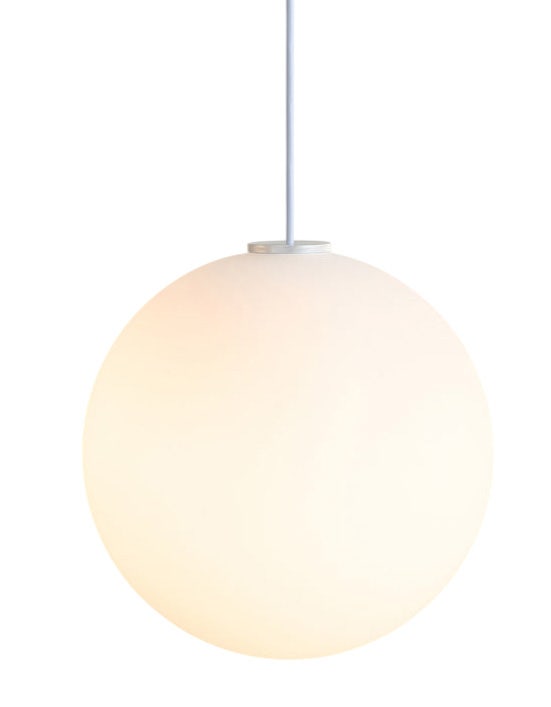 Glass 300 is as simply named as it is designed. A 300 millimeter diameter, acid etched, glass globe provides a warm, even glow. The simplicity of this light fixture makes its application versatile. Glass 200 works beautifully as a singular pendant or as a customized clustered arrangement.