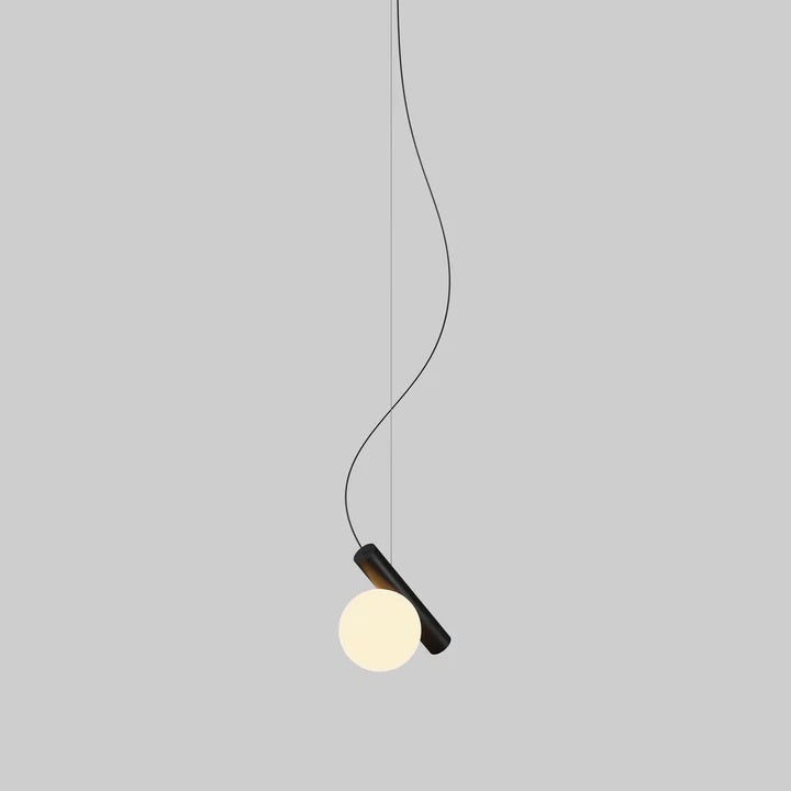 The Node Light uses the language of circles to present a delicate imbalance. A glass sphere traces its perimeter through a steel cylinder, attached at the source of light: an LED, the node. The material contrasts of weight and opacity add to the imbalancing act.