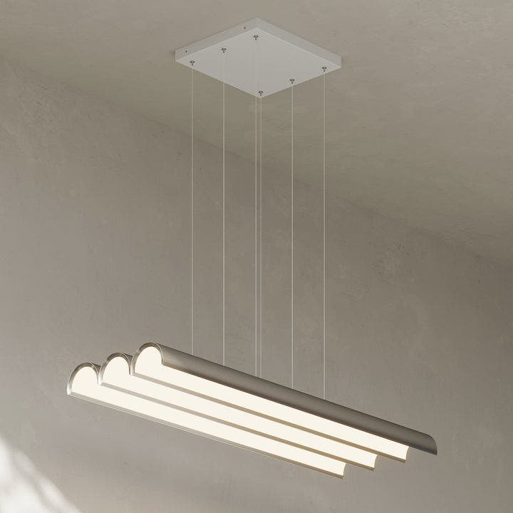 Pola, meaning “half,” is equal parts light and heavy, hard and soft. Warm light throws softness on aluminum that has been extruded into a glowing arc. Effortlessly smooth diffusion brings lightness to the frame, while the open structure allows light to flow through and warm its surroundings.