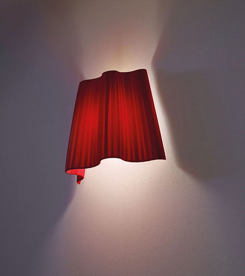 A collection of lamps with a asymmetrical texture shade, which can be used singularly or together with another element for floor, wall, table, wall and suspension lamps.