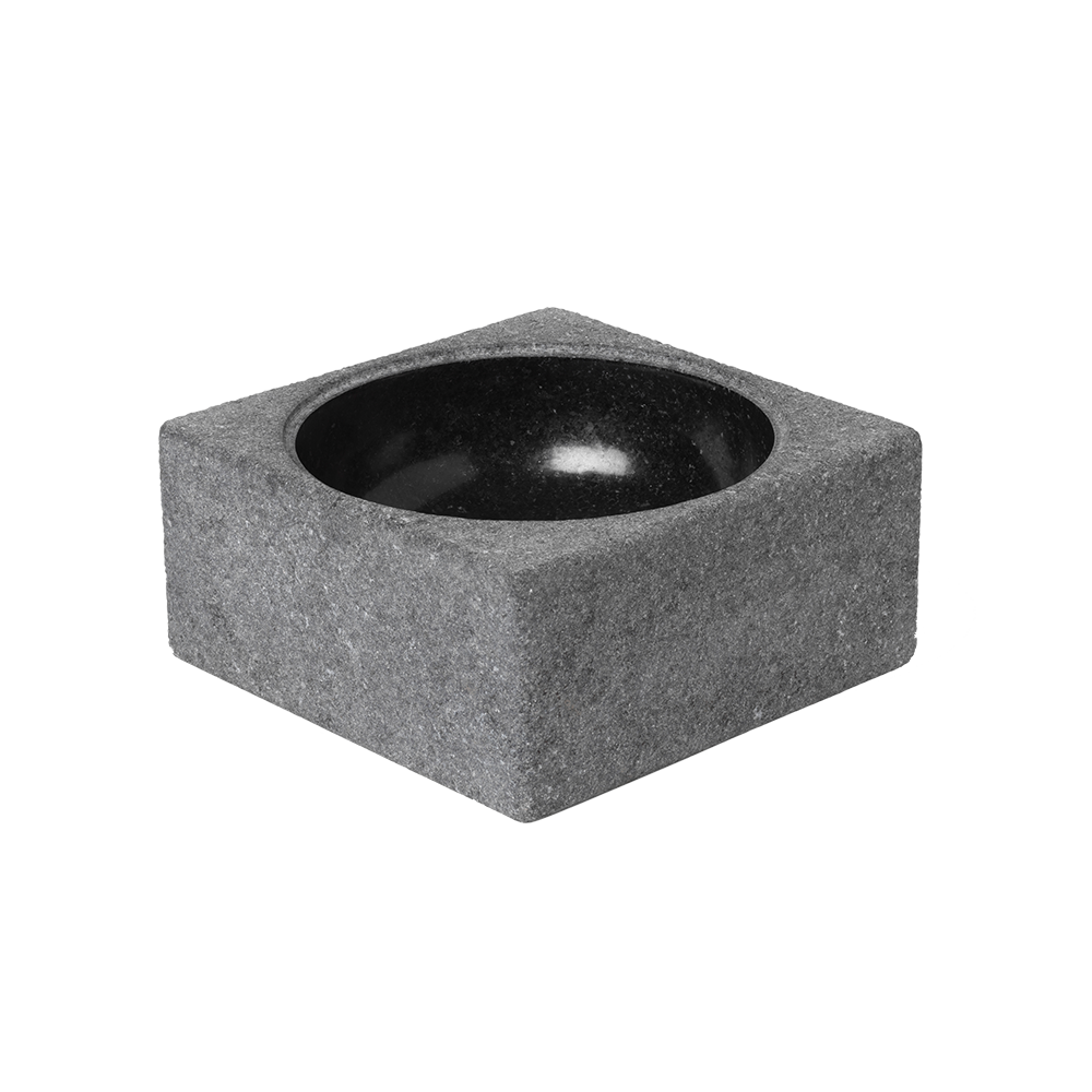 In 1963, Poul Kjærholm designed the Fredericia Town Hall and created PK-600, a large, 250kg black marble bowl. The public welcomed the bowl with open arms, which made it remarkably successful. In response to the demand, Kjærholm designed, PK-Bowl, so that everybody could enjoy it as a part of their own household. Made of granite, PK-Bowl is a stark contrast between square and round. The contrast between the texture from inside (smooth) to outside (rough) symbolizes the contrast between the feminine and masculine.