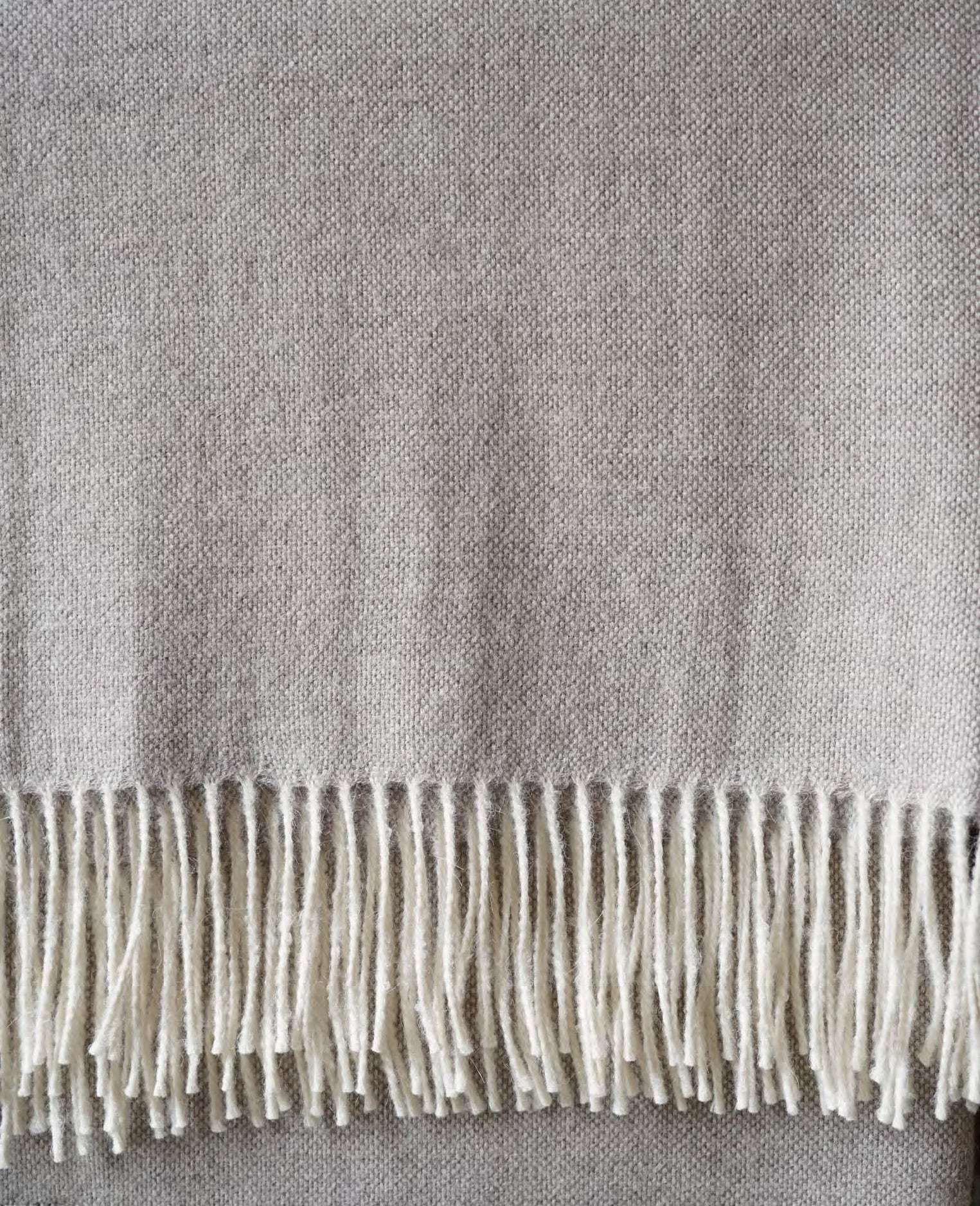 Premium baby alpaca, a finer, softer, more luxurious fiber. Colors are made with a mix of two tones, ecru in the weft showing in the delicate fringes. It’s very lightweight and super soft.