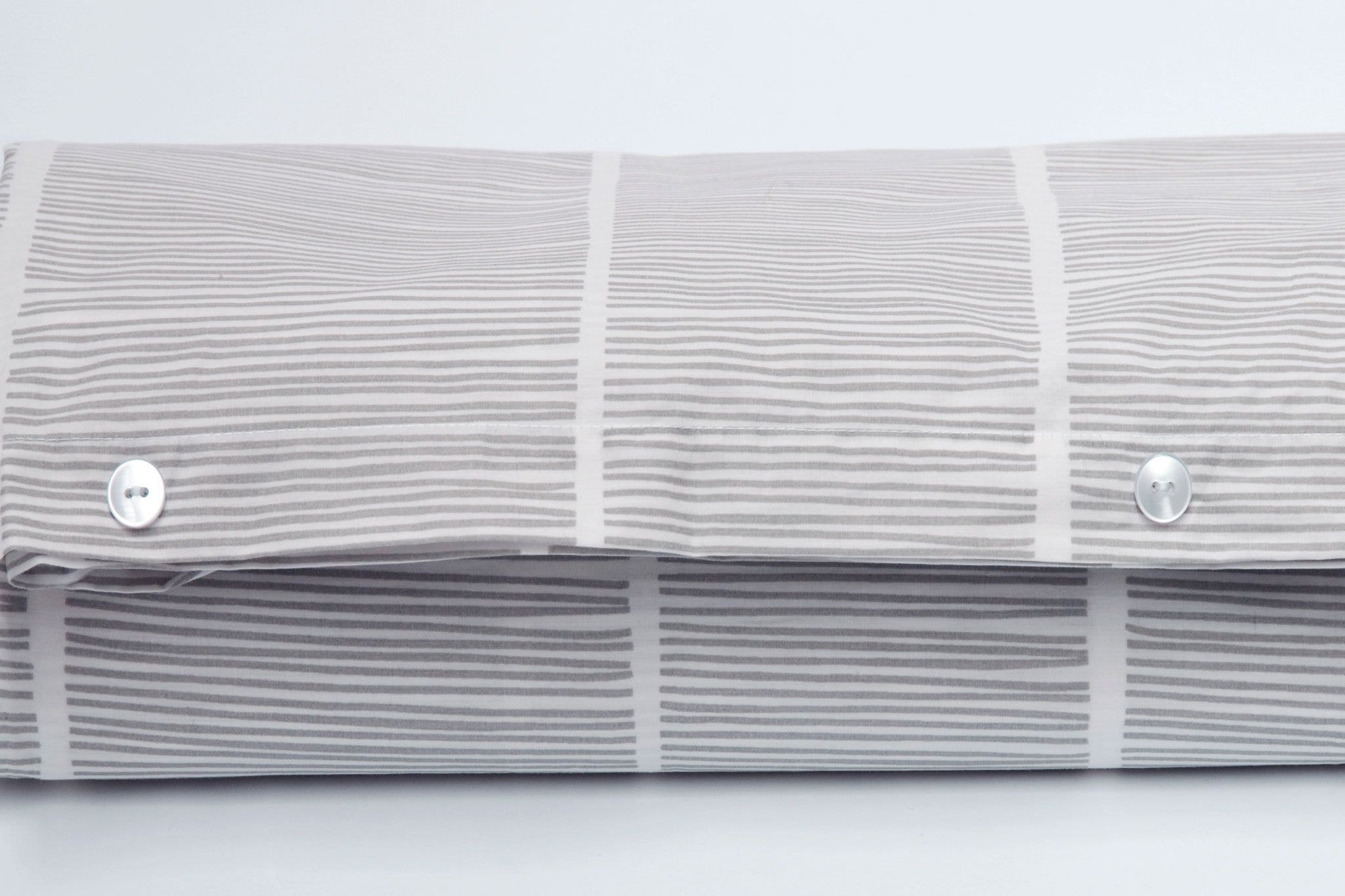 An Area classic, PINS is a printed cotton percale that is smooth, crisp and cool to sleep in. Purposefully light, loose variations in line and spacing yield a calming motif airily reminiscent of bamboo weaves.
