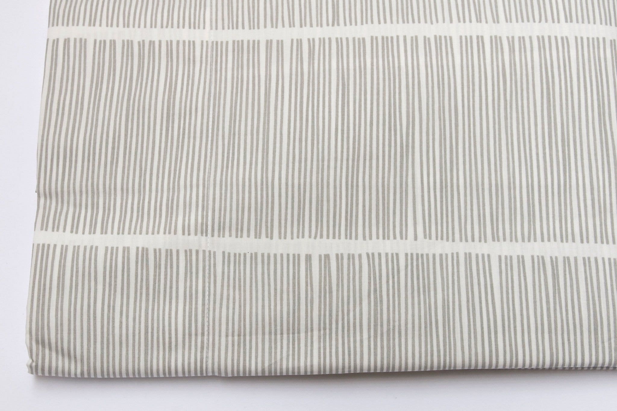 An Area classic, PINS is a printed cotton percale that is smooth, crisp and cool to sleep in. Purposefully light, loose variations in line and spacing yield a calming motif airily reminiscent of bamboo weaves.