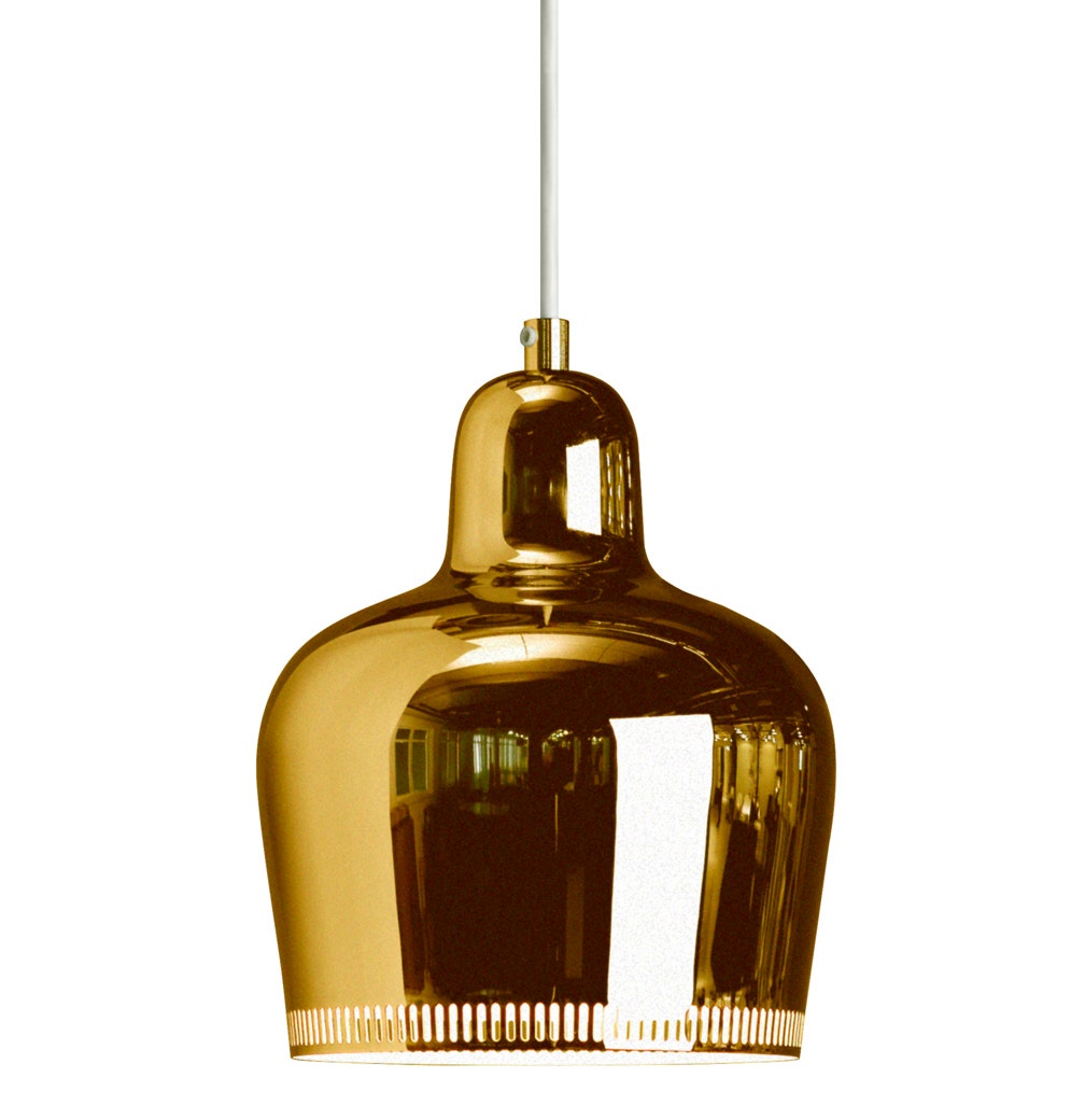 Aino and Alvar Aalto were commissioned in 1936 to design the interior of the Savoy Restaurant in Helsinki. Made from a single piece of brass, the elegant Golden Bell was a part of the restaurant’s interior. It was shown in the Finnish Pavilion of the Paris World Expo in 1937.