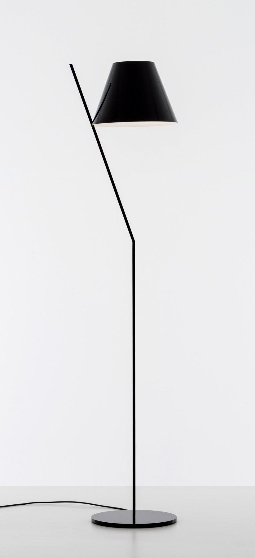 An archetypal lampshade balanced on a tilted stem. Simple elements, exquisitely combined into an amazing geometric composition, recall basic forms matched with different materials for technological reasons. Despite its plain and simple look, this lamp clearly conveys the skills of Artemide. The lampshade is a lightweight plastic volume closed by two diffusers that produce a pleasant soft direct and indirect light. The joint connects the lampshade with the aluminum stem on a minimal support. These simple elements are combined into a plain and elegant object, where the tilted stem is counterbalanced by the lampshade’s volume. "La Petite walks on a wire, balancing between full and empty. There is no symmetry in its design, but there is order. A subtle harmony of elements disassembled, in equilibrium at the boundary between light and dark." Quaglio Simonelli