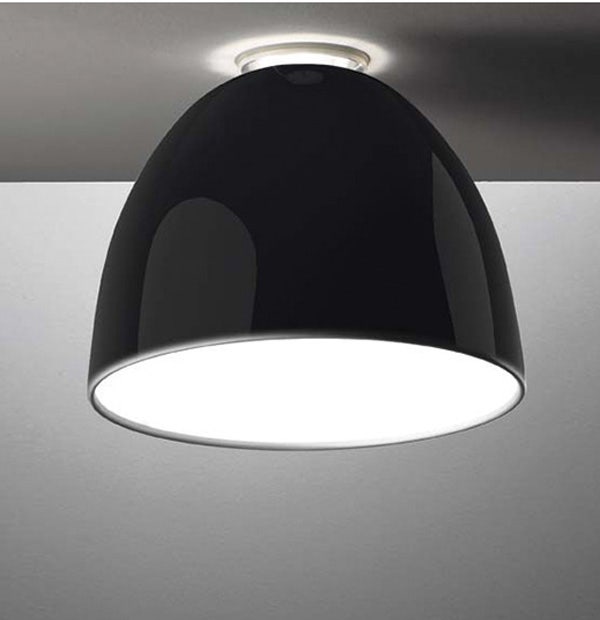 Ceiling lamp, extending the range of the Nur series. Added to the direct emission is an indirect emission that produces a halo of decorative light on the ceiling.