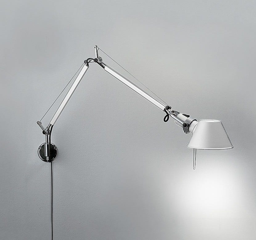 The Artemide Tolomeo Mini Wall Lamp provides task and reading lighting in an award-winning design that showcases superb engineering and excellent adjustability. The Tolomeo design received the Compasso D'oro award in 1989.