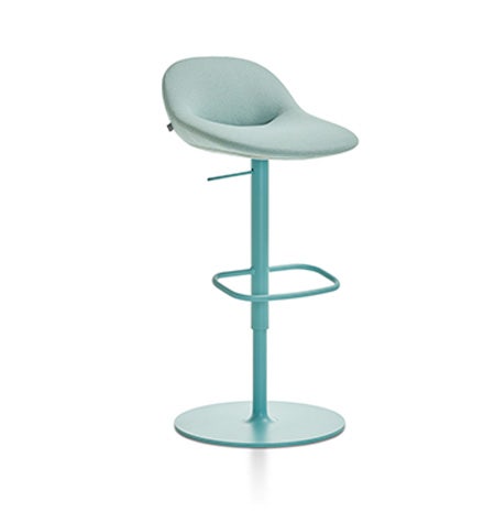 The Beso bar stool has a comfortable upholstered seat mounted on a pedestal that adds to a modern and pure image.
