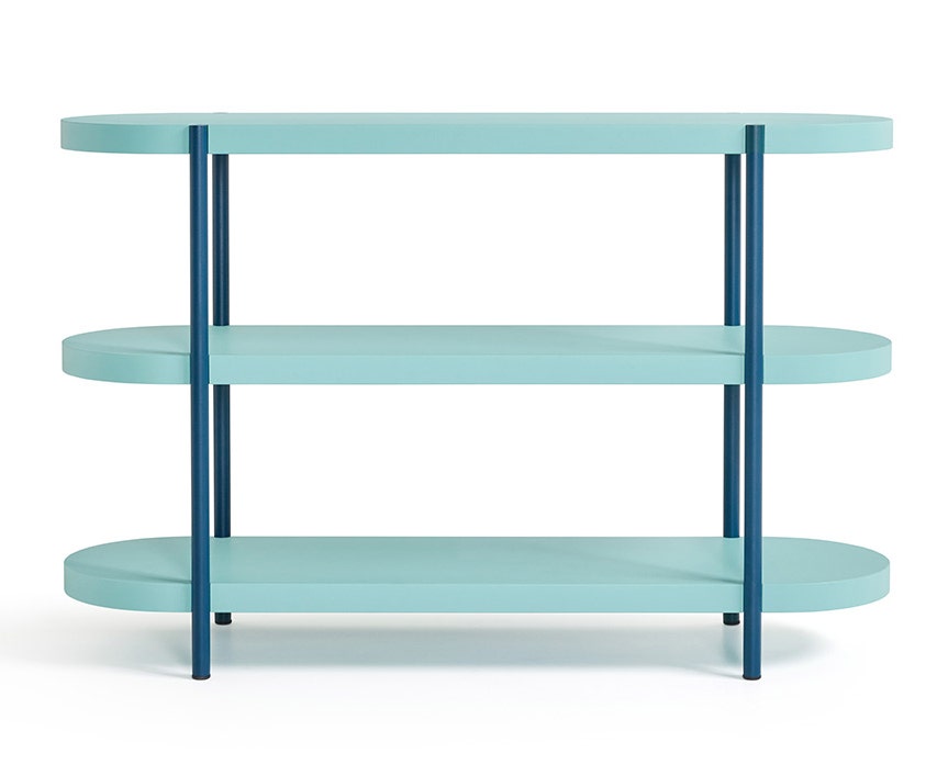The open Palladio Shelves cabinet is designed by the Swedish architects Claesson Koivisto Rune. The legs connecting the shelves follow the same technique as the Palladio table program. The characteristics, of the strong and almost impossibly simple joint between a flat surface and the support, are the same as for the tables. Yet the architectural connotations are even more present in the shelves.
