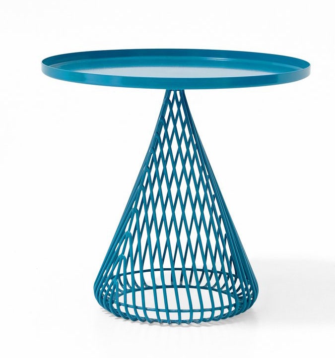 The Cono Table is comprised of a wire base with a metal tray table top. The Cono's compact base makes it an excellent side table solution for those looking for design with function.