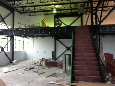 This heritage building is getting a major makeover. We've kept some of the original industrial elements though, and added some of our own - including concrete floors and a brand new mezzanine level with a central staircase adding architectural interest and more square footage to showcase our products.