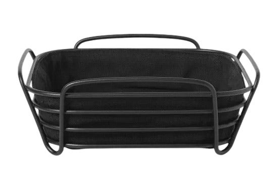 The blomus wire serving basket large is both decorative and functional. The serving basket is made with a powder coated steel wire frame and features a removable cotton liner. The fabric insert can be easily removed for washing. The basket is perfect for serving bread, chips or crackers or for general storage.