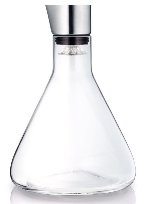 The Delta Wine Decanter with Aerator offers a smart solution: the wine is being filtered and aerated while being poured into the carafe through the lid. It's minimalist figure is of timeless beauty yet eminently practical at the same time. The unique shape of the closure means that when the wine is decanted, it runs down across the inner entire glass surface, thereby maximizing aeration. The decanter top remains in place during serving. It retains wine stone and cork residues while the spout ensures drip-free pouring.