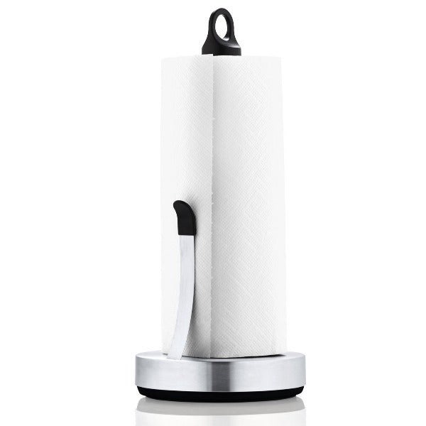The Blomus LOOP Modern Paper Towel Holder makes it easy and stylish to store your paper towels on the kitchen or bar counter top. The stainless steel base is weighted and features a ridged rubber underside to grip the counter surface. The roll is held in place thanks to a spring and stainless steel arm with plastic tip.