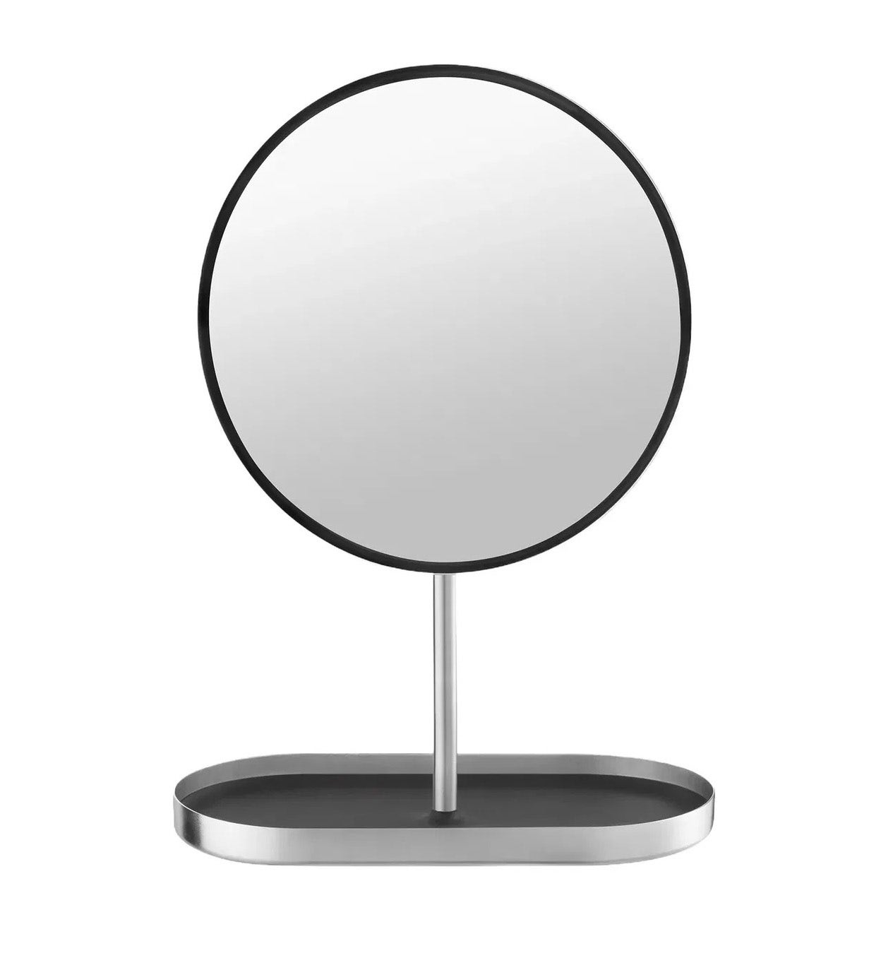 Blomus Vanity Mirror with Tray - MODO brings elegant luxury to your bathroom or spa. The blomus MODO line is made of steel for a sexy, masculine, functional design piece. The black titanium coating not only provides a pleasant feel, but is also durable, corrosion resistant and scratch resistant.