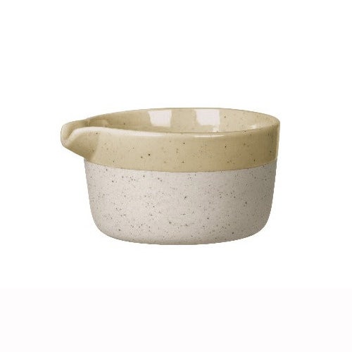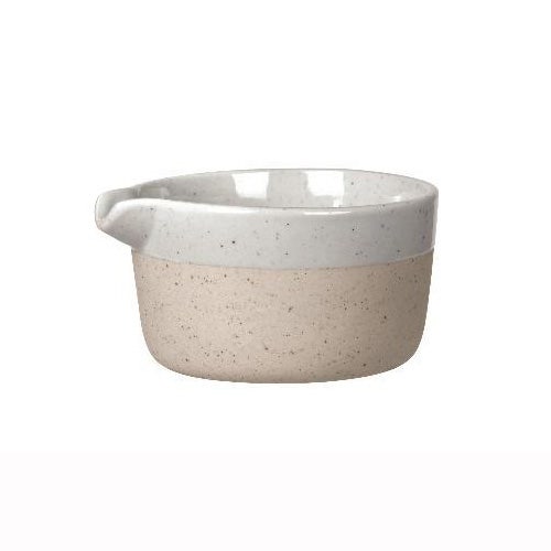 Soft and rough – like water flowing over sand. The SABLO ceramic milk jug is made of a mixture of coloured clay, quartz, minerals and oxides. The lightly speckled look perfectly complements the colour combination of grey and beige tones, and is texturally reinforced by the partial glaze. Due to variations in colour, each piece is one-of-a-kind with a unique hand-crafted appearance.