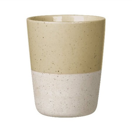 Soft and rough – like water flowing over sand. The SABLO ceramic handleless mug is made of a mixture of coloured clay, quartz, minerals and oxides. The lightly speckled look perfectly complements the colour combination of grey and beige tones, and is texturally reinforced by the partial glaze. Due to variations in colour, each piece is one-of-a-kind with a unique hand-crafted appearance.