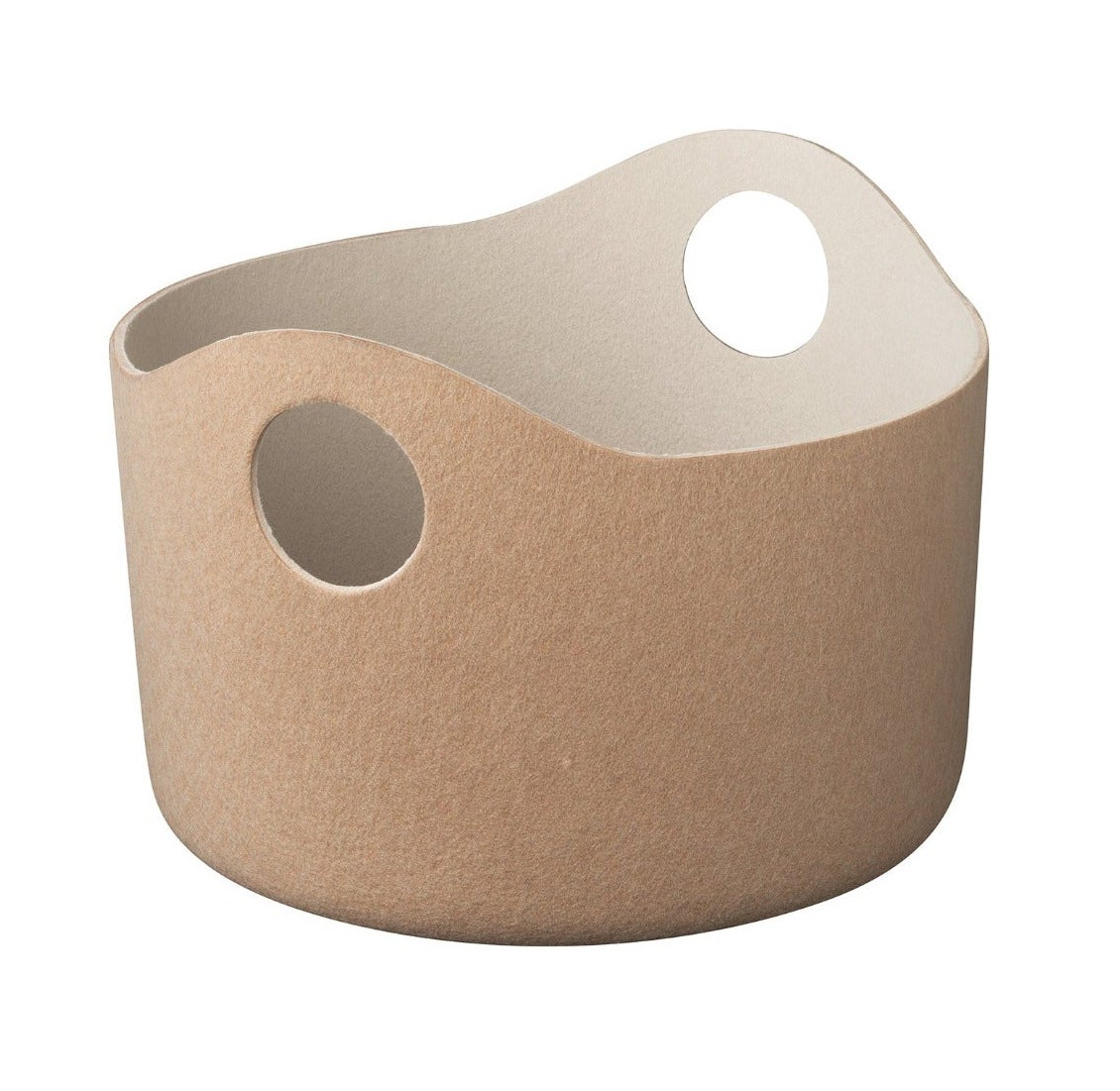 Blomus TIGGY Felt Basket With Handles is a versatile storage basket. The beauty and softness of this design can function as a waste paper basket in the office, for blanket storage in the living room, or even toy storage in a child's room. Made of soft felt, the baskets are available in multiple sizes and feature handle cutouts for easy carrying.