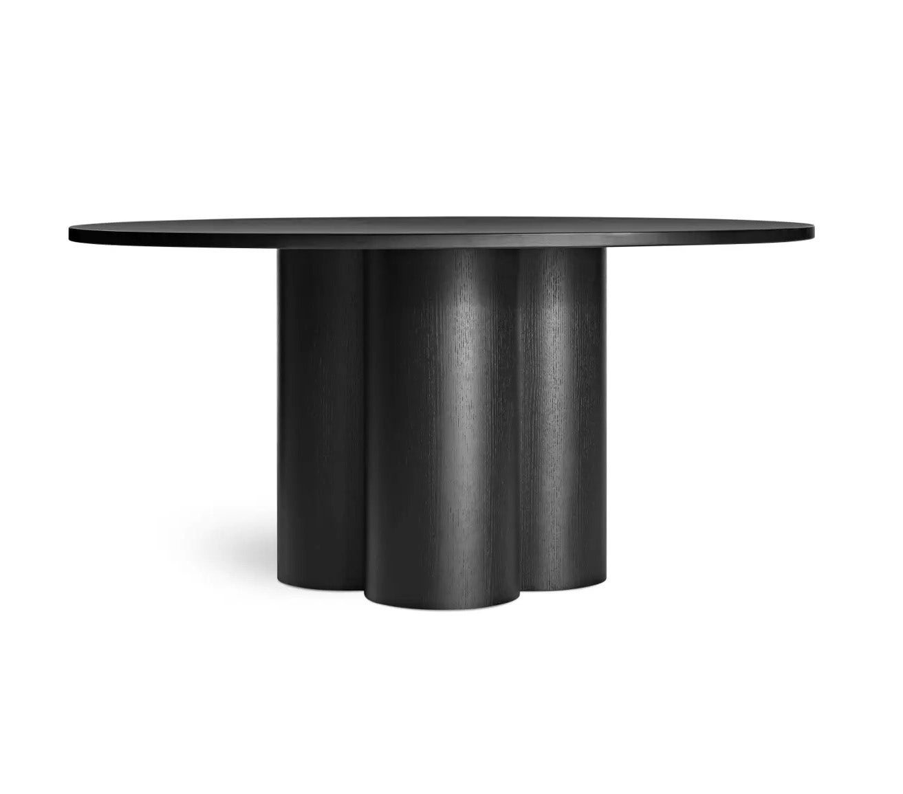Four pillars merge to create a beguiling combination of forms and a chunky, yet elegant clover-shaped pedestal. Top it off with a hefty slab of wood or honed Carrara marble followed by a five-course feast. Minimal and delightful, anyway you slice it.