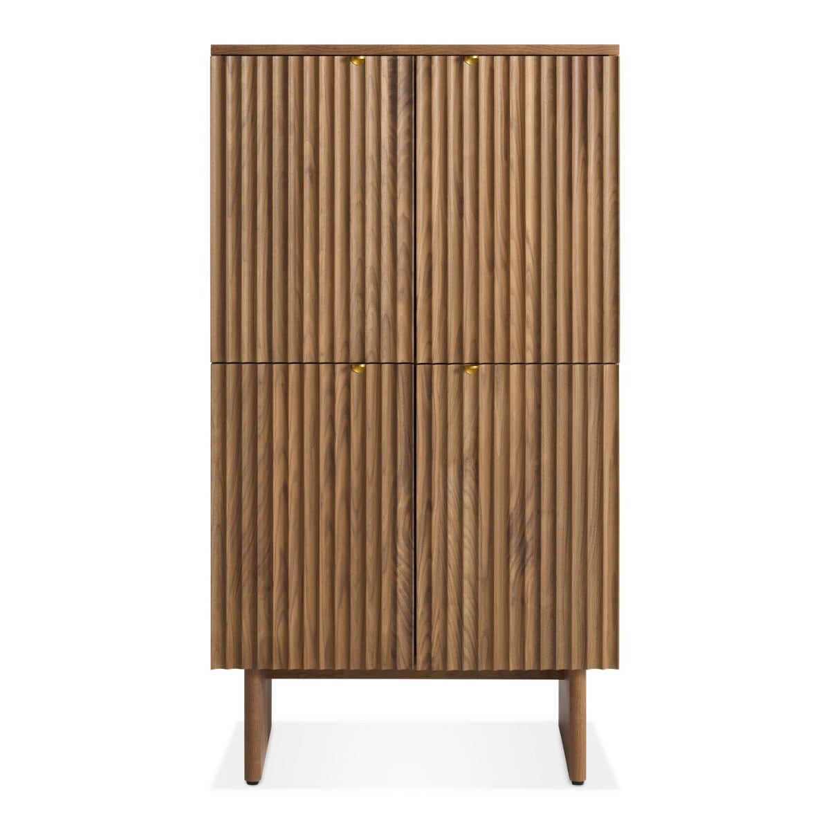 Murmur puts refined elegance front and center. Fluted wood creates a continuous pattern of textural delight. Small sandcast brass pulls nest in the grooves for subtle sophistication. Convex legs and soft-close drawers complete the pretty picture. Available in a whole slew of equally stunning shapes and sizes.