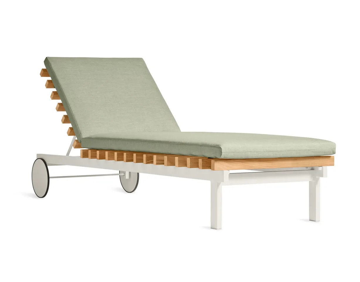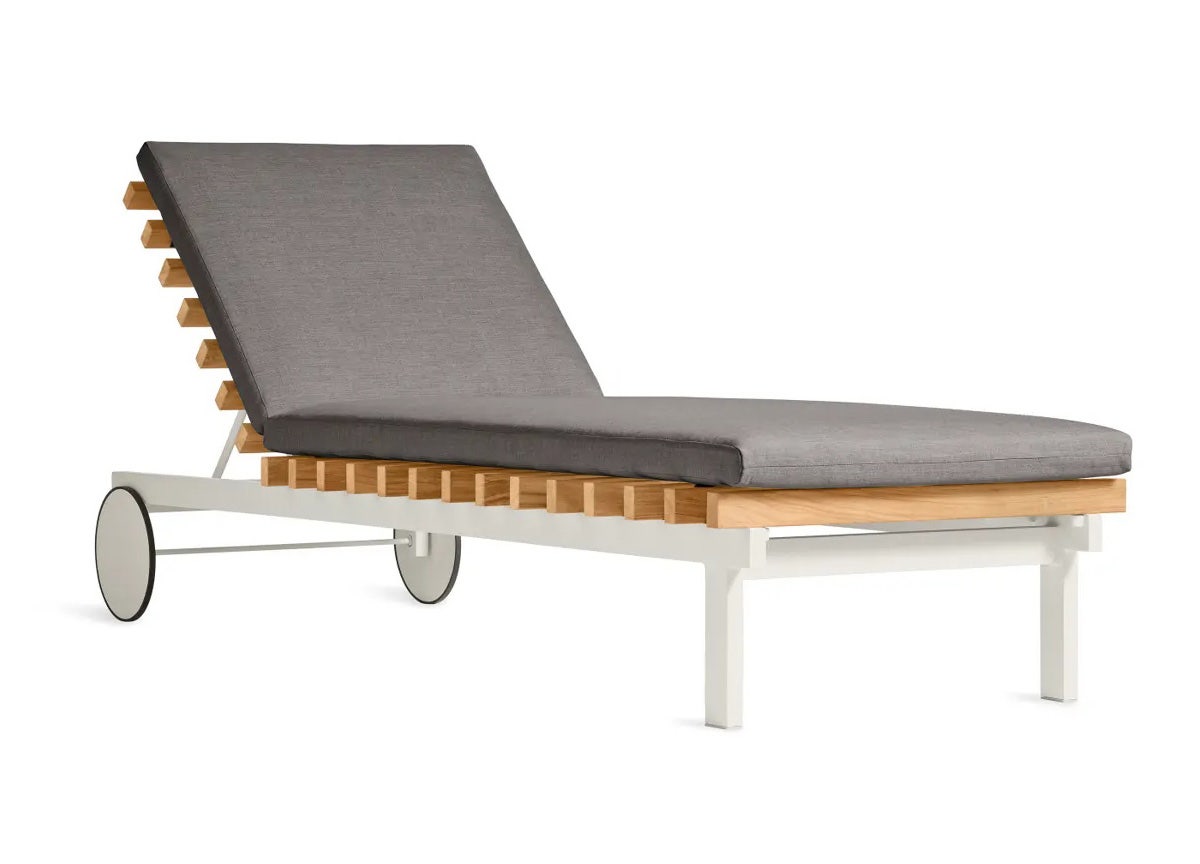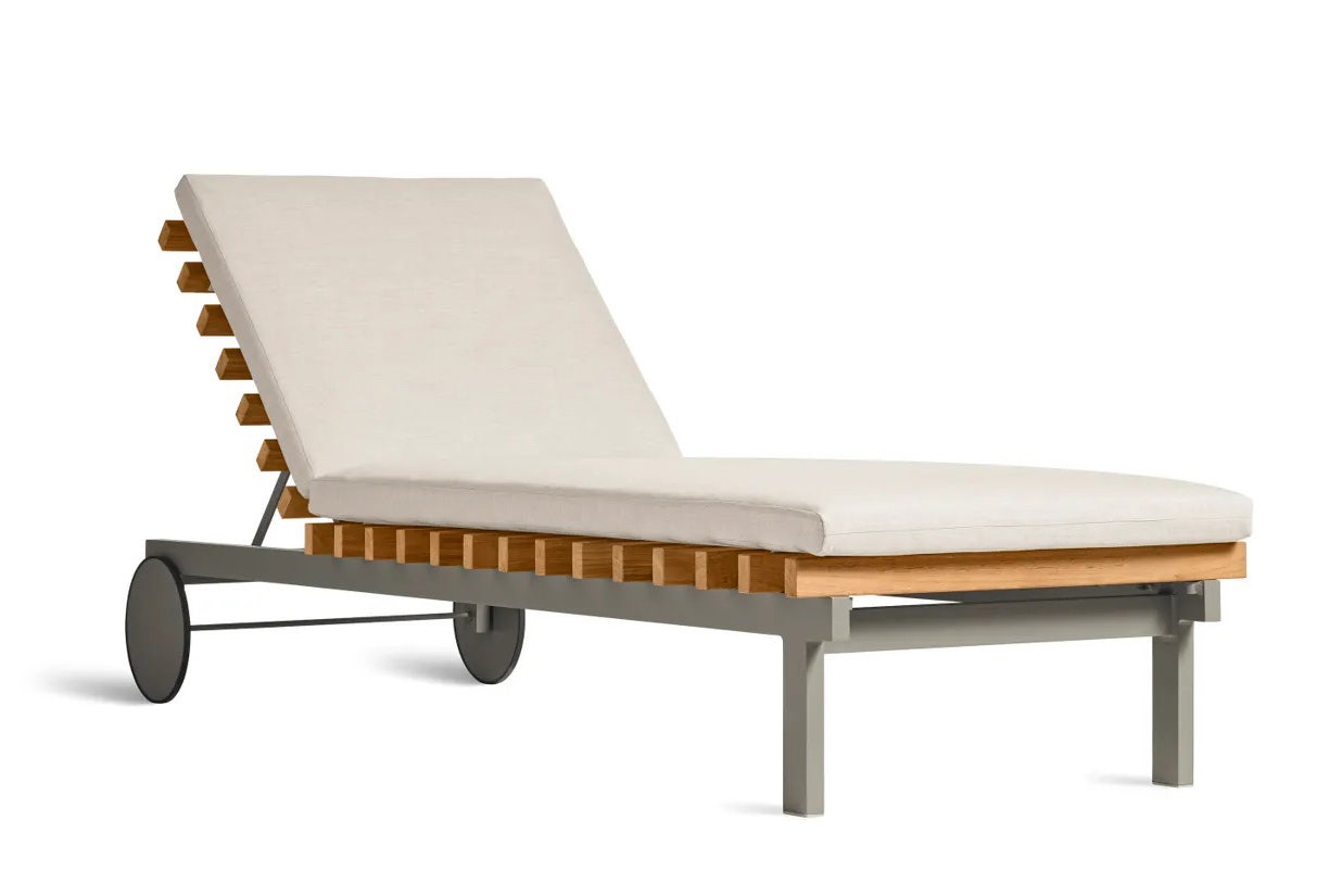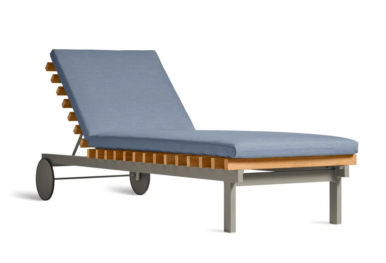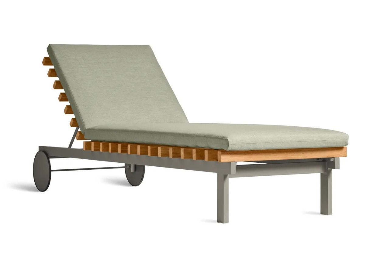 Inspired by the marine world of docks, decking and boat details, our designers brought the warmth of wood into our outdoor assortment through the Perch Collection. The unique construction is a layering of a rigid aluminum base, teak wood slats and a slim Sunbrella upholstered cushion. Despite the use of three materials, a light and airy appearance is achieved through careful use of each material's strengths. With striking silhouettes and a just-right recline, Perch is the perfect blend of beauty, utility and comfort.