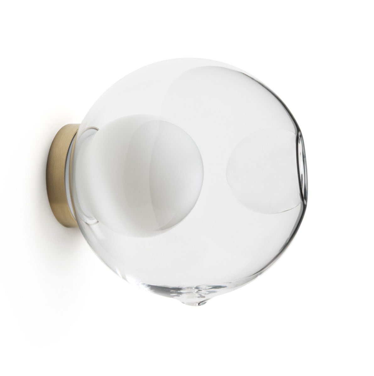 28s Brass is a single hand-blown glass pendant with a brass cylinder base, designed to mount on either the wall or the ceiling.