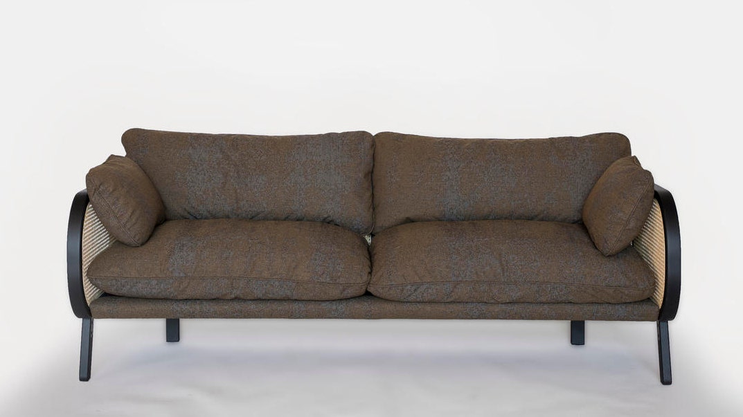 Sink into the plush seats, give into the oversized armrest and drift away daydreaming in this lounge sofa. With a woven cane back, it brings a vintage-inspired look to the contemporary workplace. Beautiful craftsmanship with an inviting design. Wooden elements play a leading role blending a woven, natural rattan finish with the rounded frame.