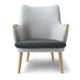 Both the CH71 and CH72 are characterized by relatively small dimensions, a slim, comfortable, fully upholstered frame, and round, tapered legs in solid wood. The comfortable furniture set features loose cushions and upholstered armrests that are finished with elegant, rounded, solid wood handles.