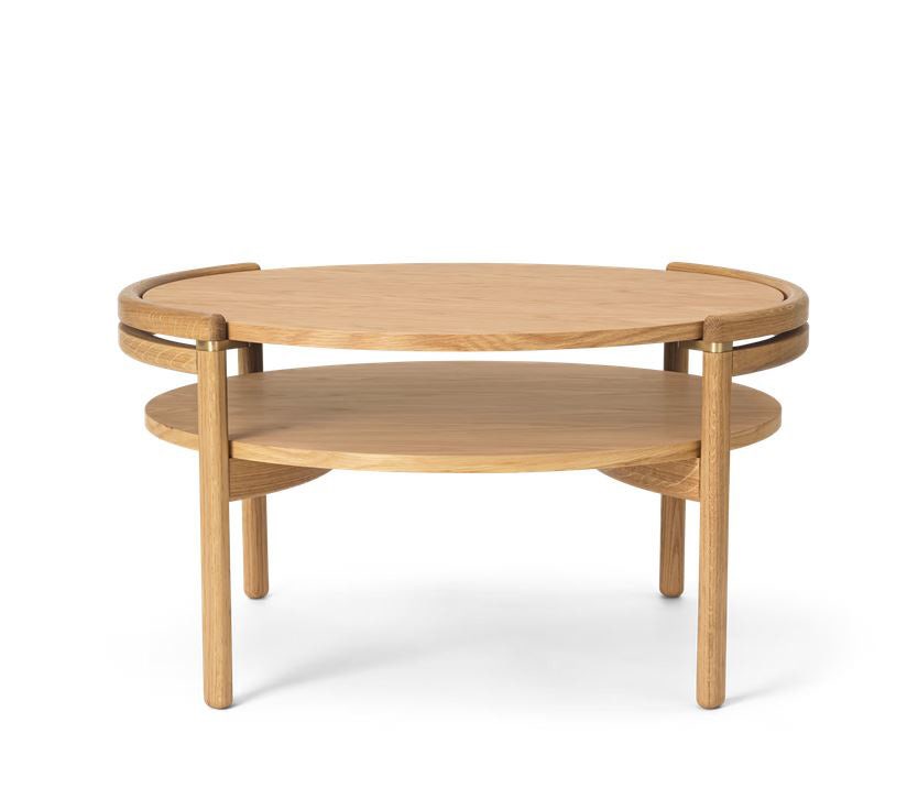 The RF1905 Sideways Coffee Table combines traditional Danish craftsmanship and materiality with contemporary aesthetics. Designed by Rikke Frost, it consists of two parts - an organic, round solid wooden frame and a reversible tabletop. Resting on top of inlaid brass brackets, the tabletop is available in oak or walnut with a reversible laminate side or, alternatively, Italian marble.