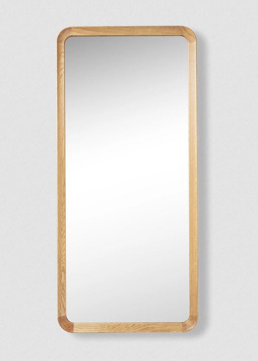 Vilhelm Lauritzen designed the VLA62 Radio House Mirror in 1945 exclusively for the Royal Retiring Room at his newly built Radio House in Copenhagen. Previously unseen by a wider audience, this full-length mirror in solid oak is ideal for a hallway, featuring a soft and organic concave frame.