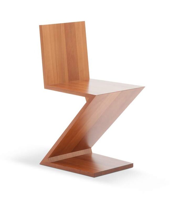 Designed by Gerrit Thomas Rietveld in 1934 and quickly deemed a design icon, the Zig Zag chair is one of the first examples of a cantilevered solid wood chair, formed by four flat pieces of wood joined in rhythmic sequence to create an extremely sophisticated appearance of instability.