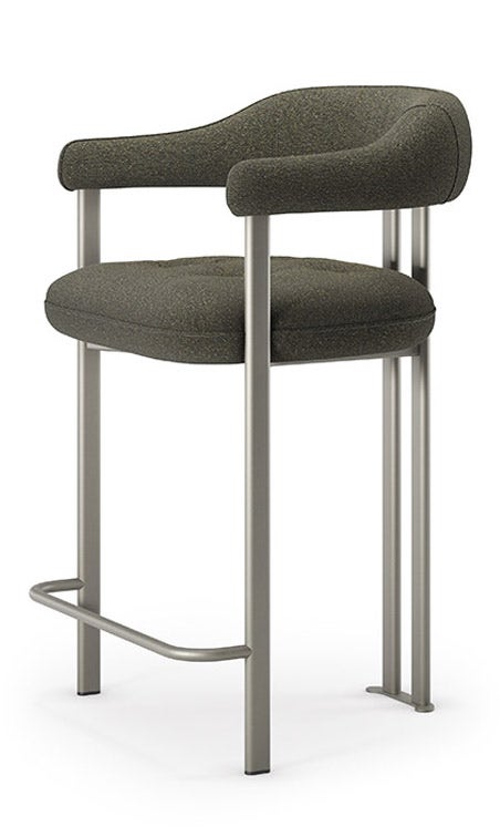Stool with frame in titanium (GFM11), bronze (GFM18), graphite (GFM69), pearl (GFM70) or black (GFM73) embossed lacquered steel. Cover in fabric, micro nubuck, soft leather or synthetic leather as per sample card. The cover is not removable.
