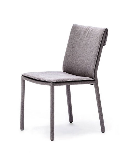 Chair with or without arms with steel frame completely covered in fabric, micro nubuck, synthetic leather or soft leather as per sample card. The cover is not removable.
