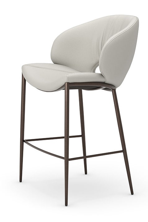 Stool with frame in titanium (GFM11), bronze (GFM18), graphite (GFM69), pearl (GFM70) or black (GFM73) embossed lacquered steel. Cover in fabric, micro nubuck, soft leather or synthetic leather as per sample card. The cover is not removable.