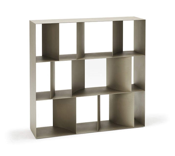 Bookcase in titanium (GFM11), bronze (GFM18), graphite (GFM69) or pearl (GFM70) embossed lacquered steel, each unit can be set up side by side or stackable. Wall anchorage is necessary if the optional ballast is not fixed.
