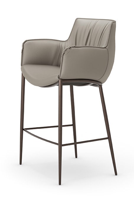 Stool with frame in titanium (GFM11), bronze (GFM18), graphite (GFM69), pearl (GFM70) or black (GFM73) embossed lacquered steel. Cover in fabric, micro nubuck, soft leather or synthetic leather as per sample card. The cover is not removable.