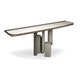 Console with base in titanium (GFM11), graphite (GFM69) or black (GFM73) embossed lacquered steel. Top in ceramic Marmi Alabastro (KM02), matt Golden Calacatta (KM05), glossy Golden Calacatta (KM06), matt Portoro (KM07), glossy Portoro (KM08), glossy Sahara Noir (KM09), Makalu (KM11), Breccia (KM12), Corcovado (KM14), Kaindy (KM16), Borghini Calacatta opaco (KM18), glossy Borghini Calacatta (KM19), Colosseo (KM21), Andromeda (KM22), matt Invisible (KM24) or Luxor (KS23) with Brushed Bronze or Brushed Grey lacquered and rounded lower profile.
